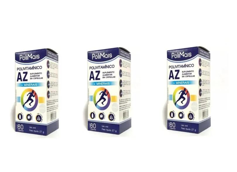 Kit C/3 Polimais Polivitamínico A/Z C/60 Cápsulas