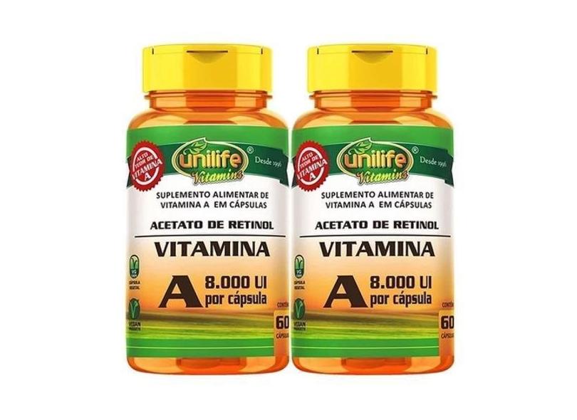 Kit Com 2 Vitaminas A 500 Mg 60 Capsulas 8000 Ui Unilife Original