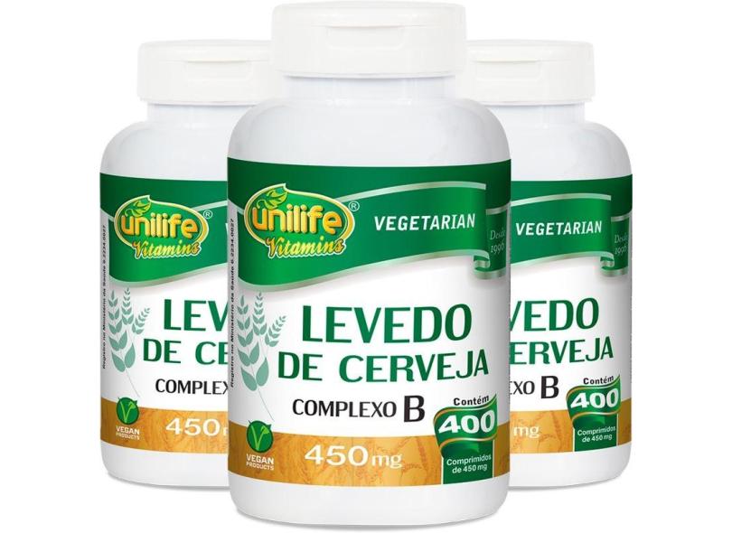 O menor preço encontrado no Brasil para Kit com 3 Levedo de cerveja complexo B 400 Cápsulas Unilife atualmente é R$ 62,90.