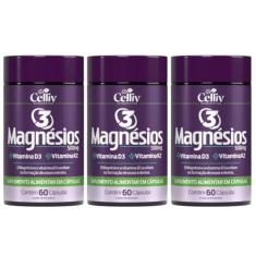 Kit Com 3 Magnésio Dimalato Triplo (Dimalato, Quelato e Cloreto de Magnésio P.A) 60 Caps Celliv