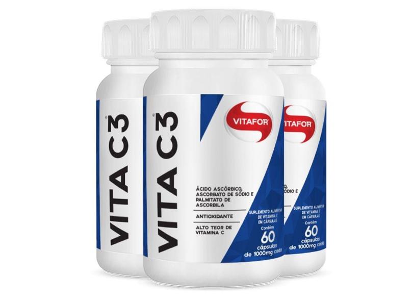 O menor preço encontrado no Brasil para Kit com 3 VITA C3 - Vitamina C Vitafor com 60 Cápsulas atualmente é R$ 183,54.
