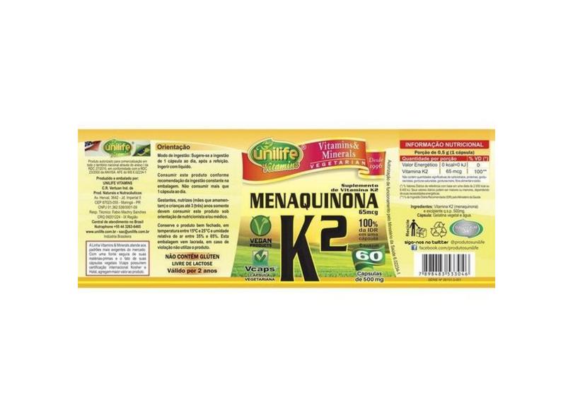 Kit com 3 Vitamina K2 Menaquinona MK7 da Unilife 60 cápsulas