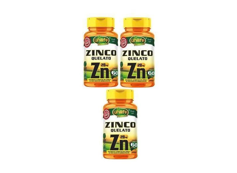 Kit Com 3 Zinco Quelato Zn 60 Cápsulas 28Mg Unilife