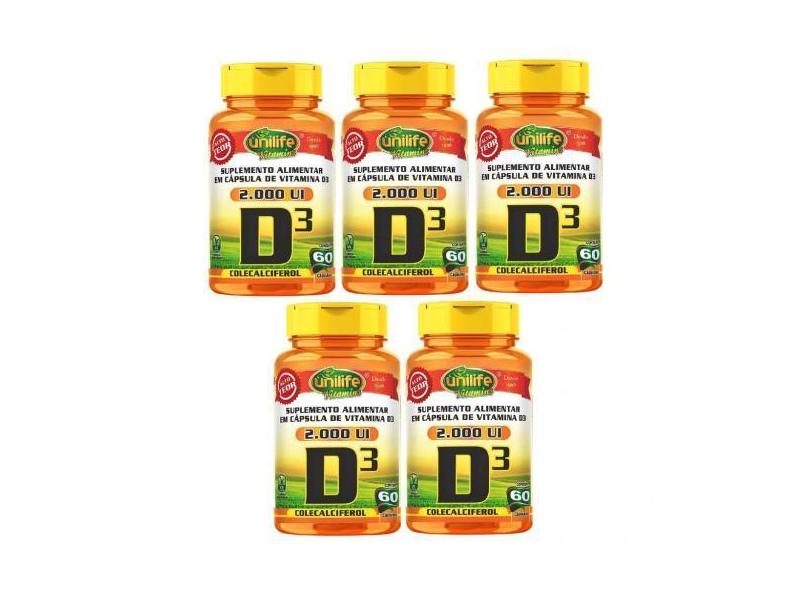 Kit Com 5 - Vitamina D Colecalciferol 500Mg 60 Capsulas Unilife