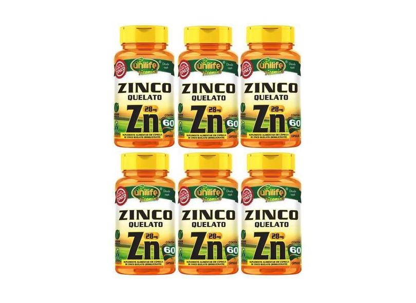 Kit Com 6 Zinco Quelato Zn 60 Cápsulas 28Mg Unilife