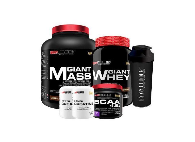 Kit Giant Mass 3Kg + Giant Whey 900G + Bcaa 4.5 250G + 2X Creatina 100