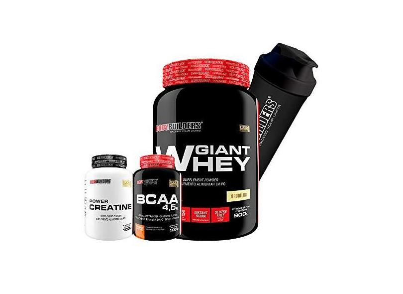 O menor preço encontrado no Brasil para Kit Giant Whey 900g + BCAA 4,5 100g + Power Creatina 100g + Coqueteleira – Bodybuilders Sabor: Baunilha atualmente é R$ 135,69.
