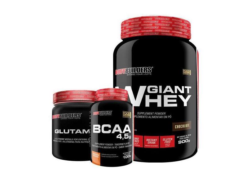 O menor preço encontrado no Brasil para Kit Giant Whey 900G Chocolate + Glutamina 300G + Bcaa 100G - Bodybuild atualmente é R$ 210,89.