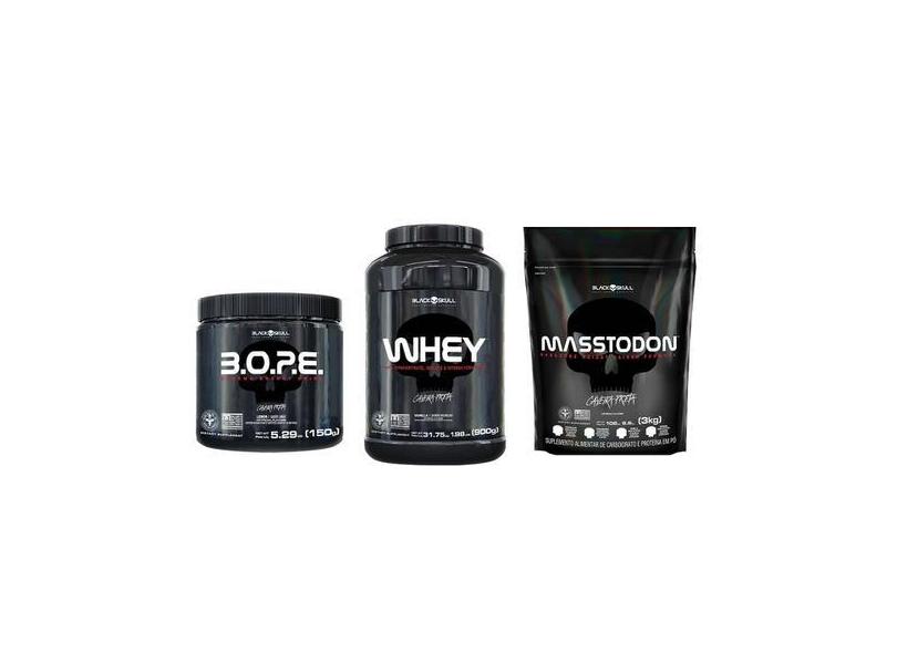 Kit Hipercalórico + Whey + Pré-Treino - Black Skull