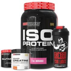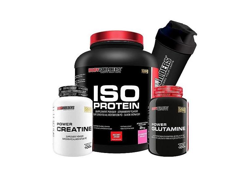O menor preço encontrado no Brasil para KIT Iso Protein 2Kg + Power Creatina 100g + Power Glutamina 100g + Coqueteleira - Bodybuilders Sabor Morango atualmente é R$ 169,90.