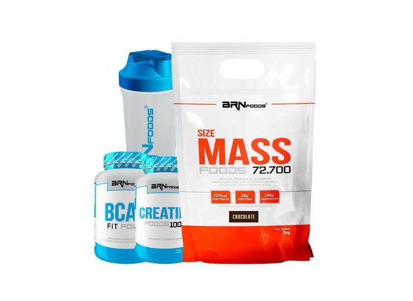 Kit Size Mass 3Kg + Creatina 100G + Bcaa Fit 100G Tangerina + Coquetel