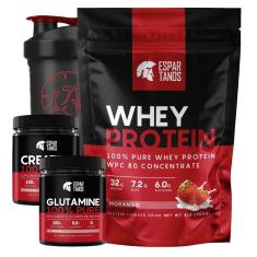 Kit Whey Concentrado + Creatina + Glutamina + Shaker-Unissex