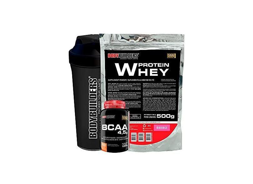 O menor preço encontrado no Brasil para Kit Whey Protein 500g + BCAA 100g + Coqueteleira - Bodybuilders Sabor Morango atualmente é R$ 49,90.