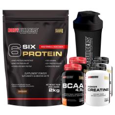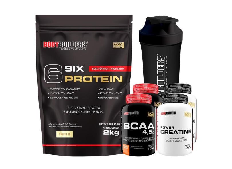 O menor preço encontrado no Brasil para KIT Whey Protein 6 Six Protein 2kg + 2x BCAA 100g + 2x Creatine 100g + Coqueteleira – BB-Unissex atualmente é R$ 113,05.
