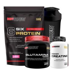 O menor preço encontrado no Brasil para Kit Whey Protein 6 Six Protein 2Kg + Creatina 100g + Glutamina 100% 300g + Coqueteleira - BB-Unissex atualmente é R$ 189,99.