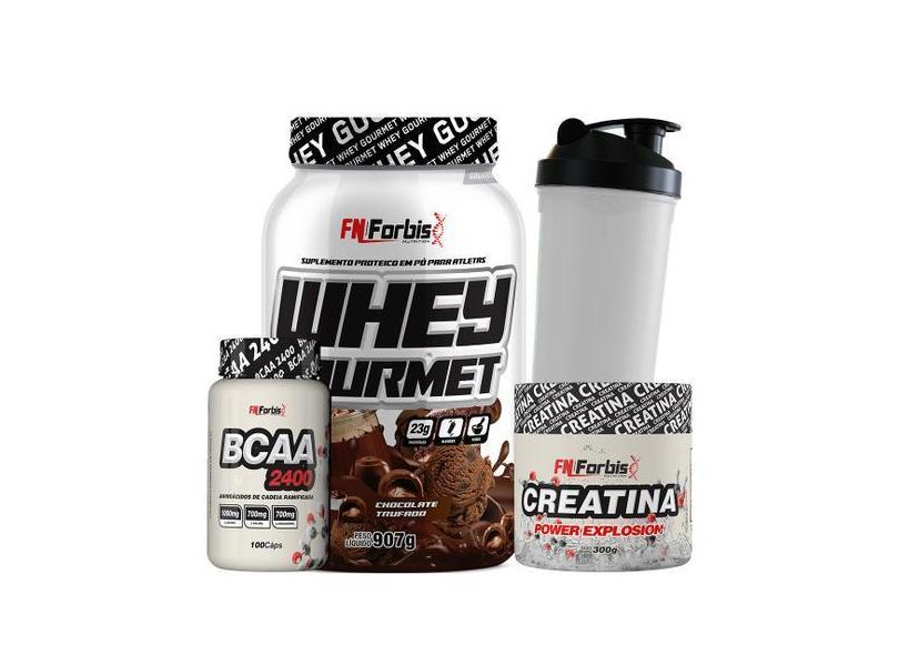 Kit Whey Protein Gourmet + Creatina 300G + Bcaa 100 Cáps + Coqueteleir