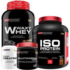 O menor preço encontrado no Brasil para Kit Whey Protein Waxy whey 2Kg + Iso protein 2Kg + Creatina 100g + Glutamina 300g - Bodybuilders-Unissex atualmente é R$ 275,49.