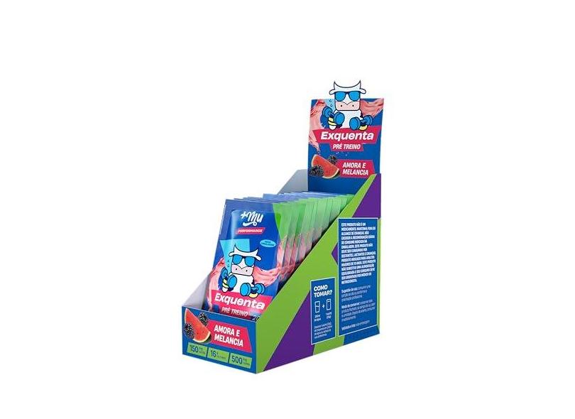 +Mu Pré Treino Exquenta Sabor Amora e Melancia - Display com 15 sachês - 300g