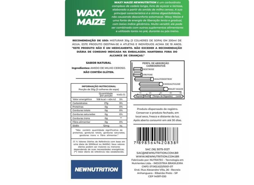 O menor preço encontrado no Brasil para NewNutrition Waxy Maize - Natural 1kg atualmente é R$ 54,90.