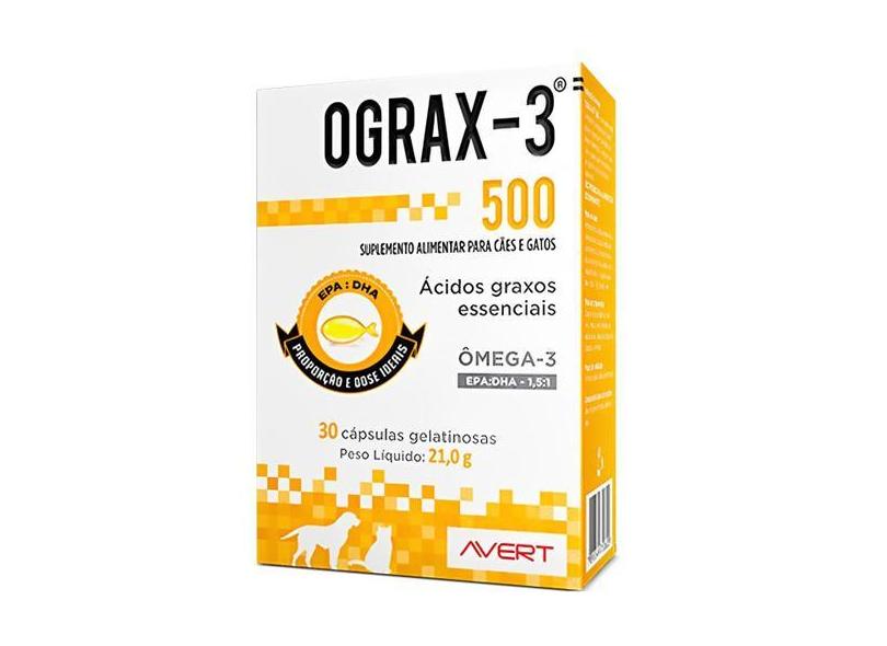 Ograx 3 500 Mg 30 Capsulas Avert Omega 3 para Cães e Gatos