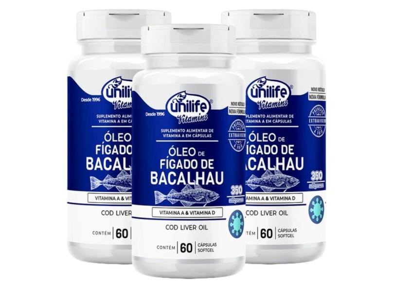 Óleo de Fígado de Bacalhau Vitaminas A e D 60 Caps 350mg Kit com 3