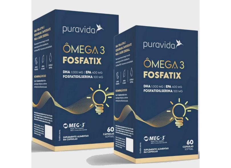 Omega 3 Fosfatix - Com Fosfatidilserina - Kit 2x 60 Capsulas Softgel - Pura Vida - Lançamento