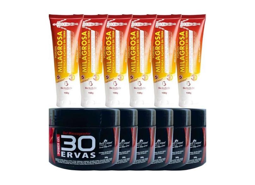 Revenda Atacado 6 Gel 30 Ervas Power 300G + 6 Pomada Massageadora Mila