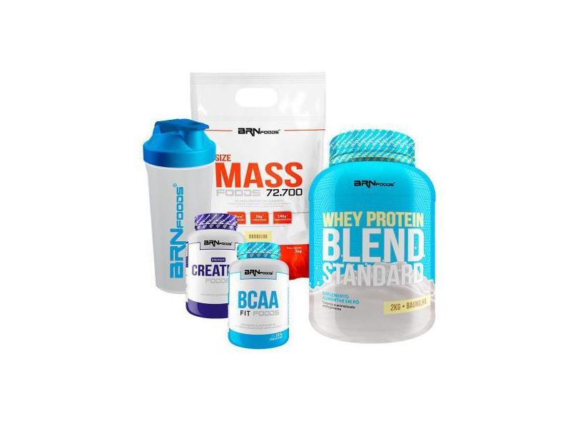 O menor preço encontrado no Brasil para Size Mass 3Kg Bau + Whey Blend 2Kg+ Creatina + Bcaa + Coquet - Brnfood atualmente é R$ 327,02.