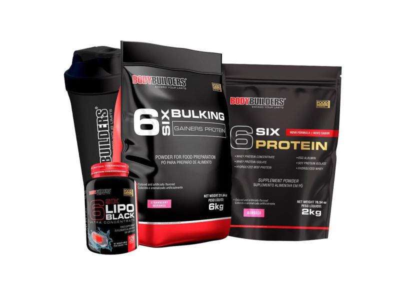 O menor preço encontrado no Brasil para SUPER KIT 6 Six Bulking 6kg + 6 Six Whey Protein 2kg + 6 Six Lipo Black 120 caps + Coq - BB-Unissex atualmente é R$ 199,40.