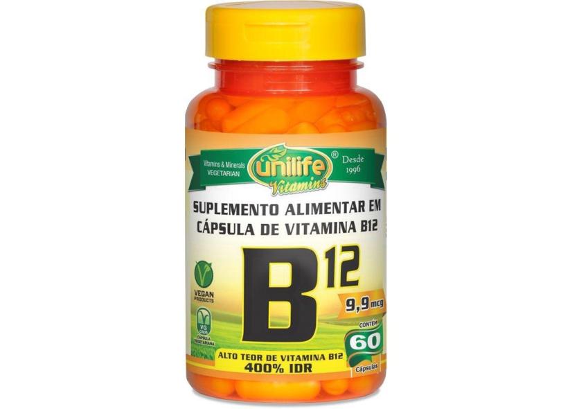 A embalagem da Vitamina B12 Unilife contém 60 cápsulas, o que é o suficiente para dois meses de consumo diário.