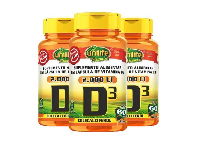 Vitamina D3 2000 U.I. Colecalciferol 60 Cápsulas De 470Mg Kit Com 3 -