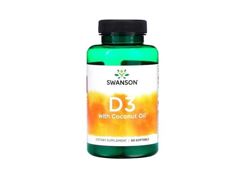 Vitamina D3 com Óleo Coco Swanson 60 Softgels Importado