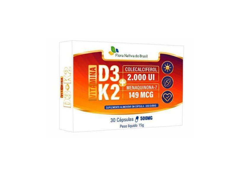 Vitaminas D3 + K2 30 Caps (2000Ui D3 E 149Mcg K2) 500Mg - Flora Nativa