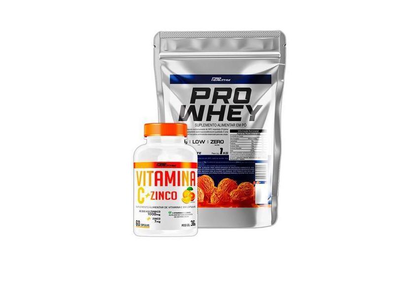 O menor preço encontrado no Brasil para Whey Protein 1Kg + Vitamina C + Zinco 60 Capsulas - Pro Healthy - Pro atualmente é R$ 71,30.