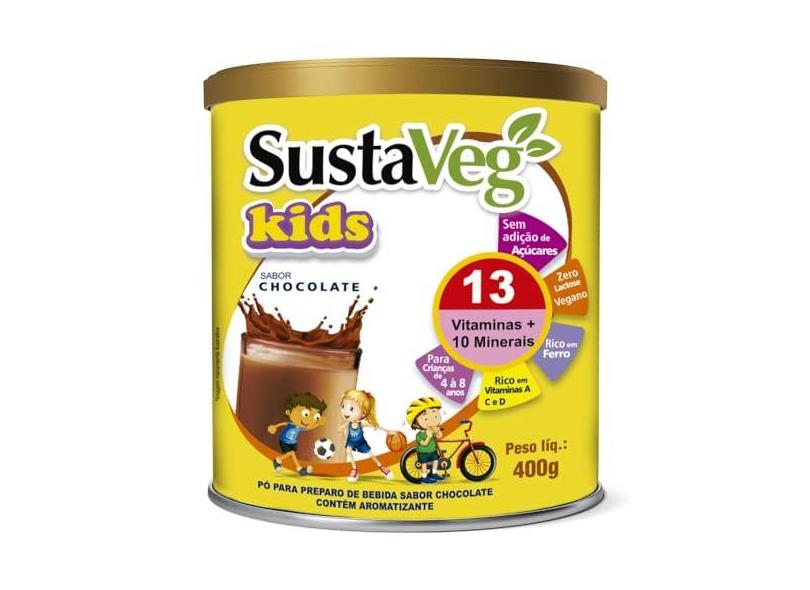 WVEGAN SustaVeg Kids Chocolate 400g - Pó Para Preparo de Bebida - Complemento Alimentar Infantil- Leite Vegetal Em Pó Nutritivo - Sem Glúten, Açúcares e Lactose - Alimentação Saudável,Saborosa e Divertida