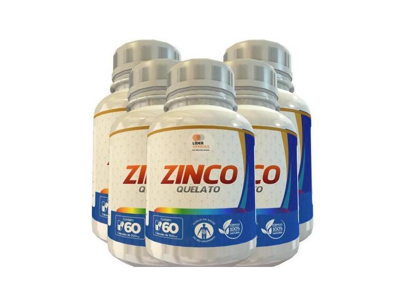 Zinco Quelato 500Mg 60 Cápsulas Kit Com 5 Potes - Lider Vendas