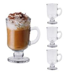 Jogo 4 Taças de Cappuccino c/Alça e Pé de Vidro 114ml Lyor