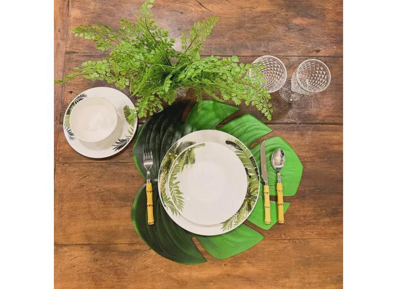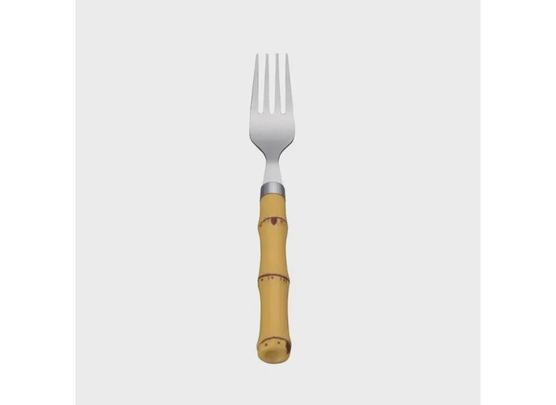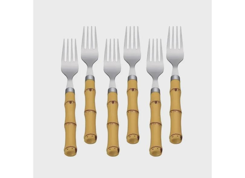 Conjunto 06 garfos para mesa de aço inox com cabo de bambu natural 20CM