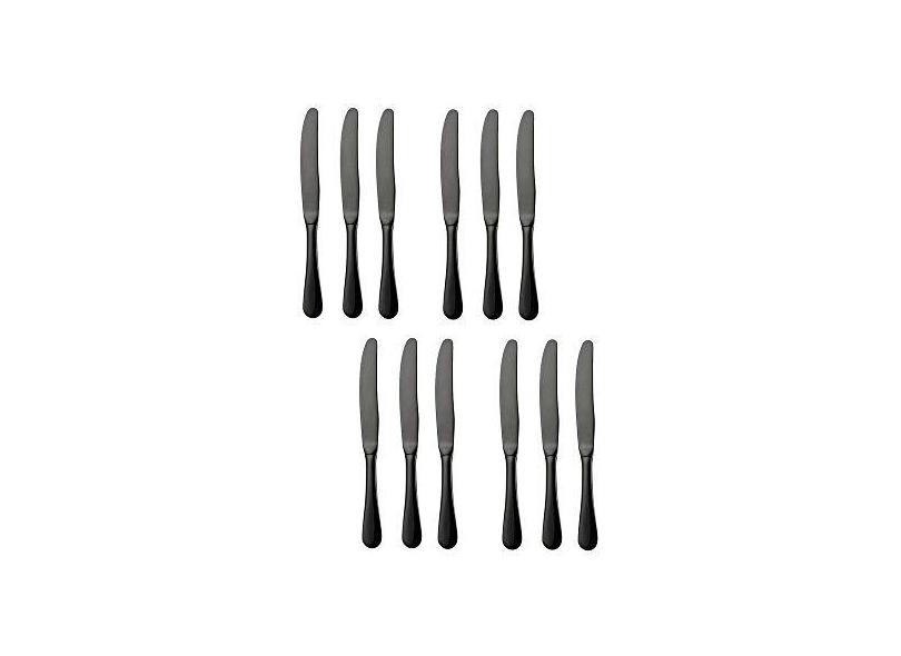 Jogo Faca de Sobremesa Preto Talher Metal Inox 12 peças