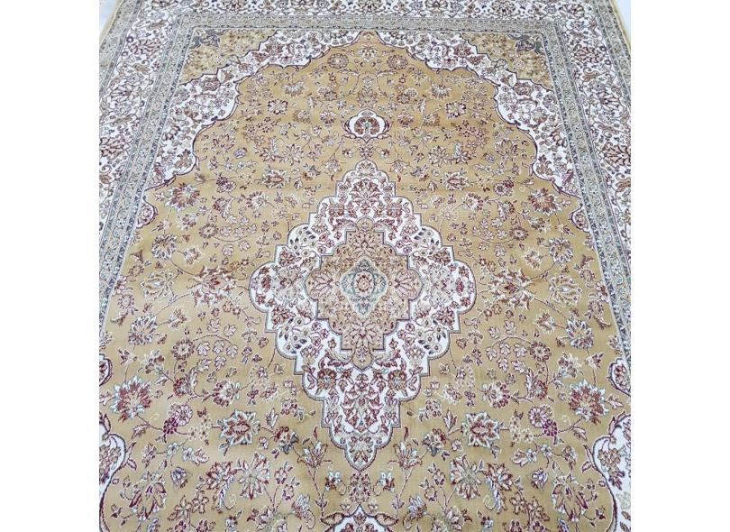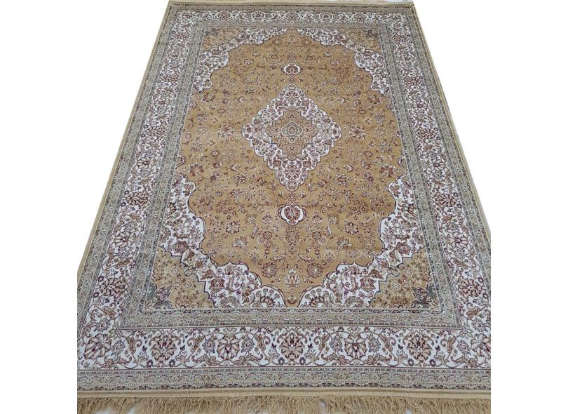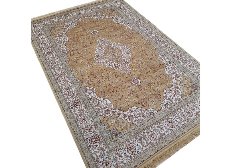 Tapete Belga Clássico 1,60 X 2,30 mts , Fino com franja e Medalhão - 3.0.3.G.O Cores Caramelo, Vinho ado, Creme e verde.