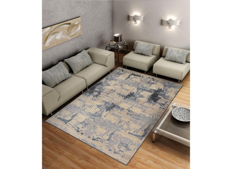 Tapete Sala Estonado Supreme e Bege Barcelona 1,50 x 2,00-Exclusivo- Tapetes São Carlos