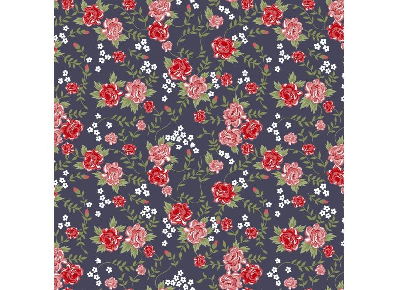 Tecido Patchwork Rosinhas Marinho com Coral 13101