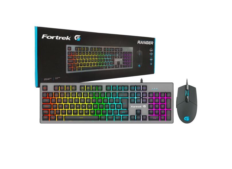 Kit Teclado E Mouse Gamer Fortrek Ranger, Usb, Rgb, Abnt2, 6400 Dpi, Grafite