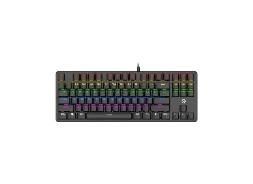 Teclado Gamer HP Mecânico Tkl Usb Led RGB Gk200, Preto