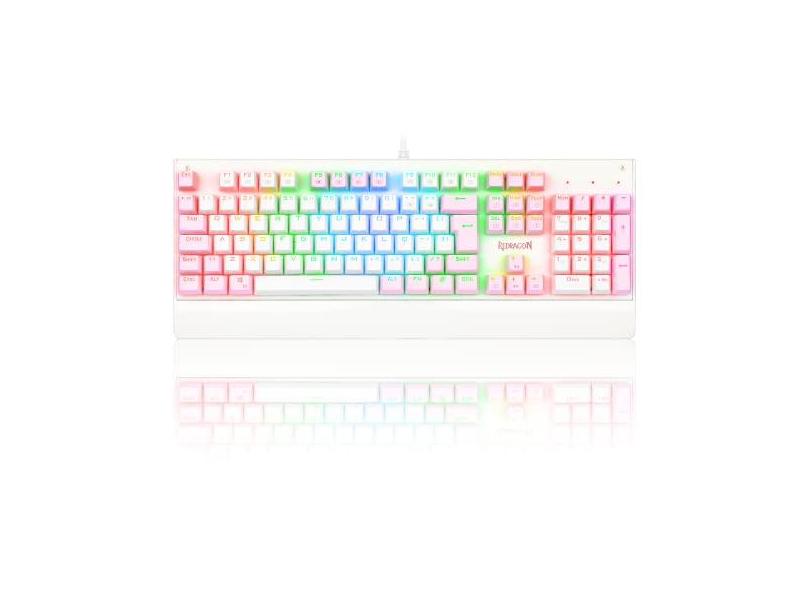 TECLADO MECANICO GAMER KALA RGB BRANCO COM ROSA SWITCH AZUL ABNT2