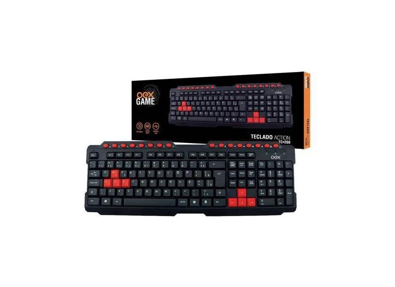 Teclado OEX Action TC200, USB, ABNT2, Preto e Vermelho