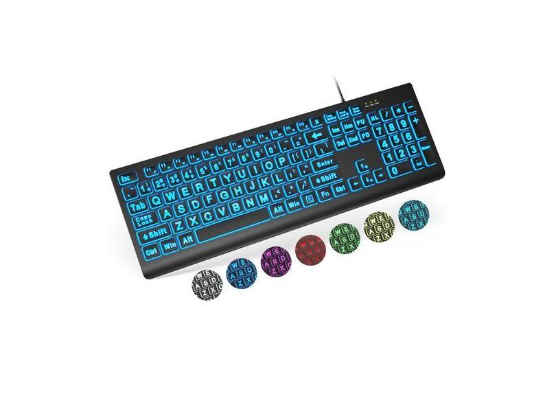 Teclado retroiluminado SABLUTE, impressão grande, USB com fio para PC