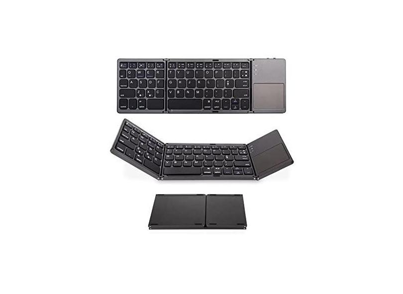 O menor preço encontrado no Brasil para Teclado sem fio BT Teclado dobrável Teclado portátil ultra fino BT com touchpad para Windows/Android/iOS cinza atualmente é R$ 525,92.