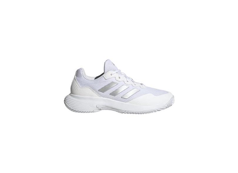 adidas Tênis feminino Gamecourt 2.0, Branco/Prata Metálico/Branco, 38