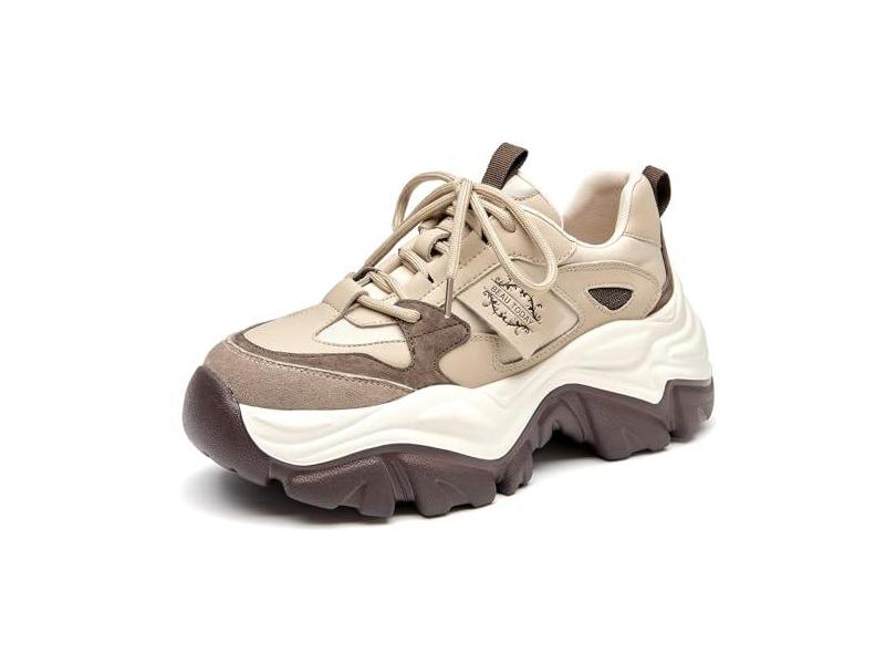 O menor preço encontrado no Brasil para BEAU TODAY Tênis grosso para mulheres, sapatos de pai para mulheres, sapatos de tênis de couro confortáveis com cadarço e cadarço, Marrom, 34 atualmente é R$ 769,27.